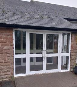 We have now installed new aluminium frame double glazed units to the front porch entrance. This has made it easier for wheelchair access. The main halls front windows and doors have also been replaced with new UPVC double glazed units. The main benefit of double-glazing project ensures reduced heat loss. So, with less expenditure on heating then it allows more scope for spending on other improvement needs of the hall. The trustees, many of whom are regular hall users, discuss and approve all renovation plans together.Local Tradesman Trevor Goodwin supplied and superbly fitted all the new units.